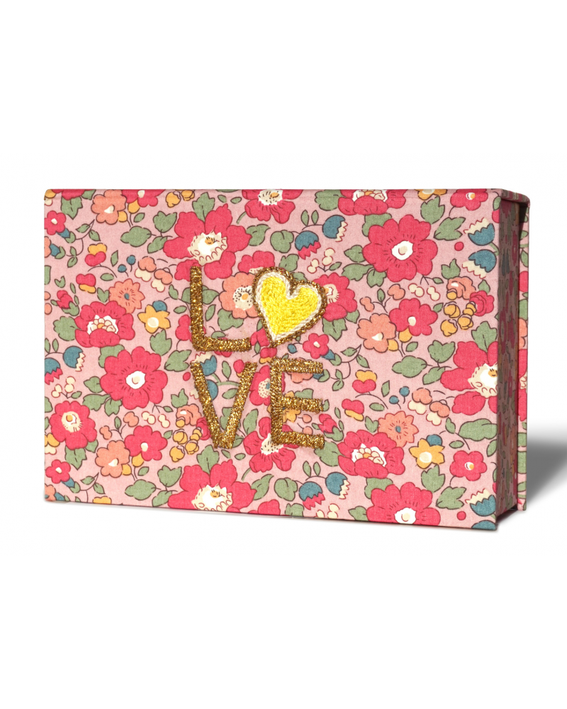 Add the nail polish of your choice to complete this pretty box, here with the message LOVE on a deep pink liberty fabric