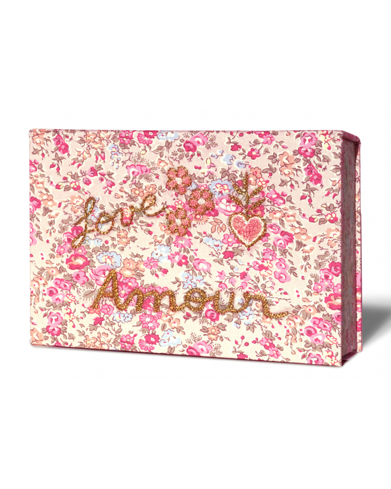 Add the nail polish of your choice to complete this pretty box, here with the message LOVE on an intense pink liberty fabric
