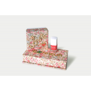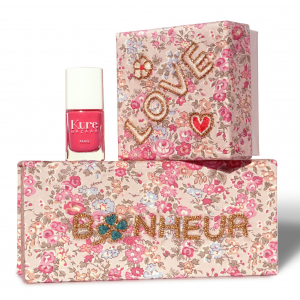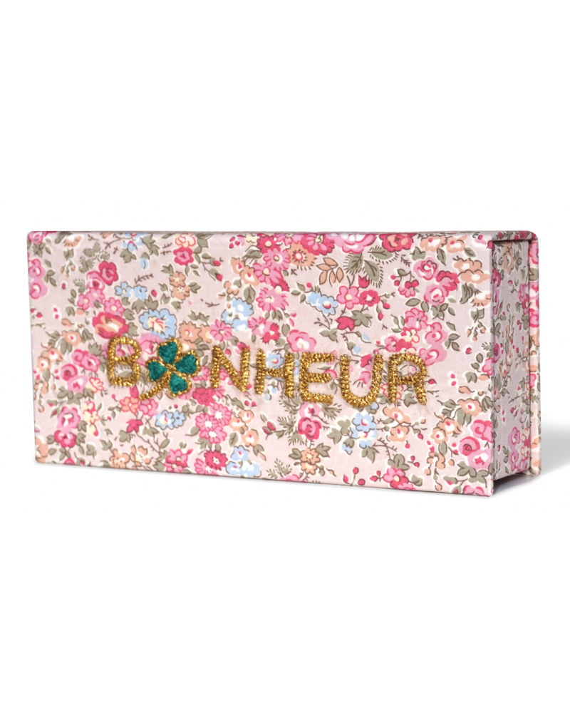 Add the nail polish of your choice to complete this pretty box, here with the message Bonheur on a light pink liberty fabric.