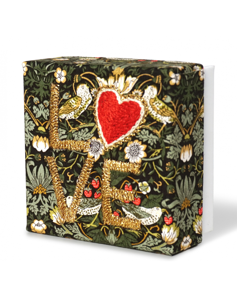 Ajoutez les vernis de votre choix pour compléter ce joli coffret ici le message LOVE sur un tissus liberty vert intense.