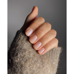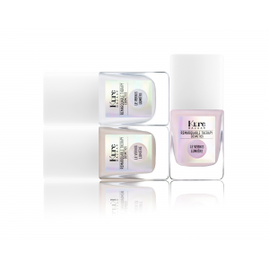 Un voile de lumière sublime les ongles en transparence et iridescence. L’effet correcteur est immédiat. Le fini lumineux, soigné et naturel.