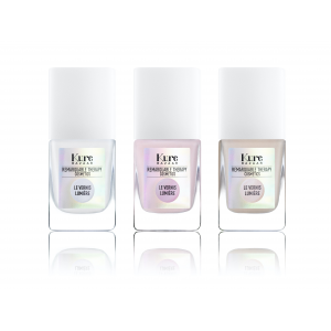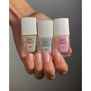 Un voile de lumière sublime les ongles en transparence et iridescence. L’effet correcteur est immédiat. Le fini lumineux, soigné et naturel.